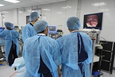 Resident training includes gaining proficiency in both basic upper and lower endoscopy. They expand their endoscopy suite experience by participating in cases in the ICU and operating room settings.