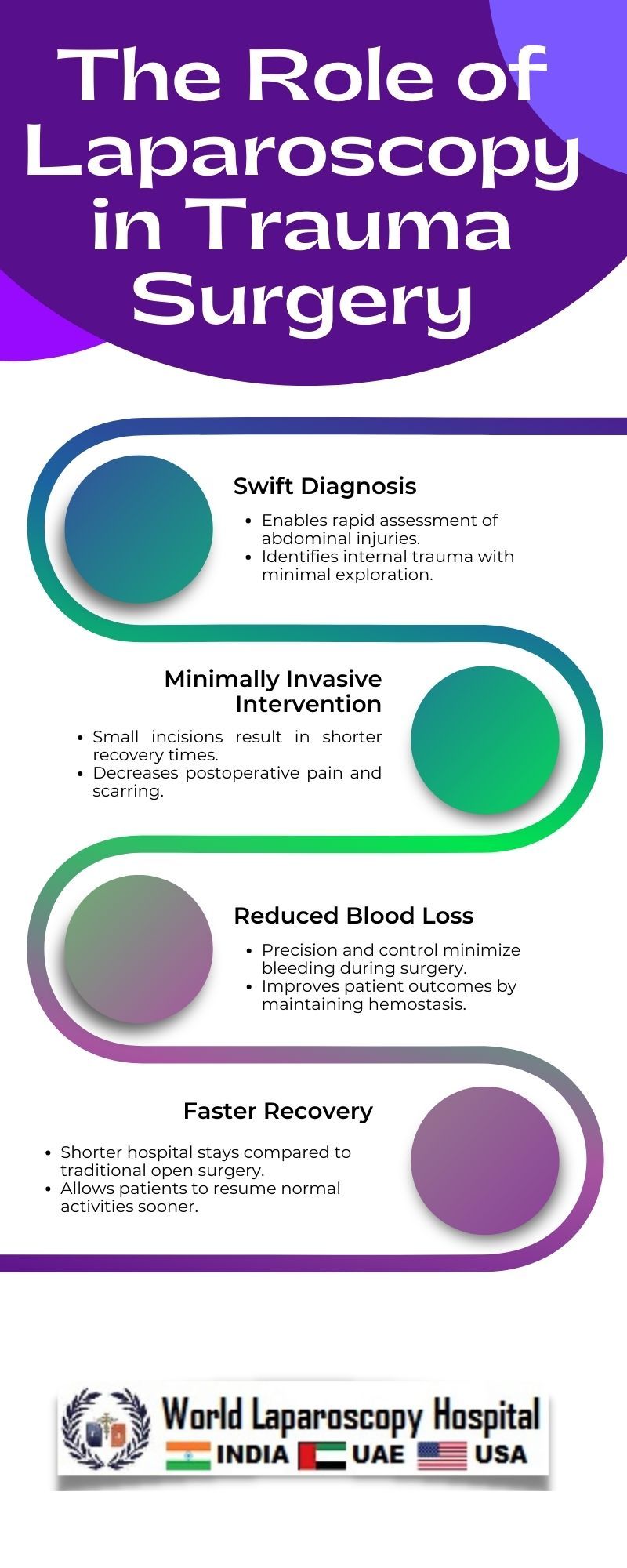 The minimally invasive nature of laparoscopy reduces the risk of significant blood loss during surgery. This is especially critical in trauma cases where preserving blood volume is paramount to patient recovery.